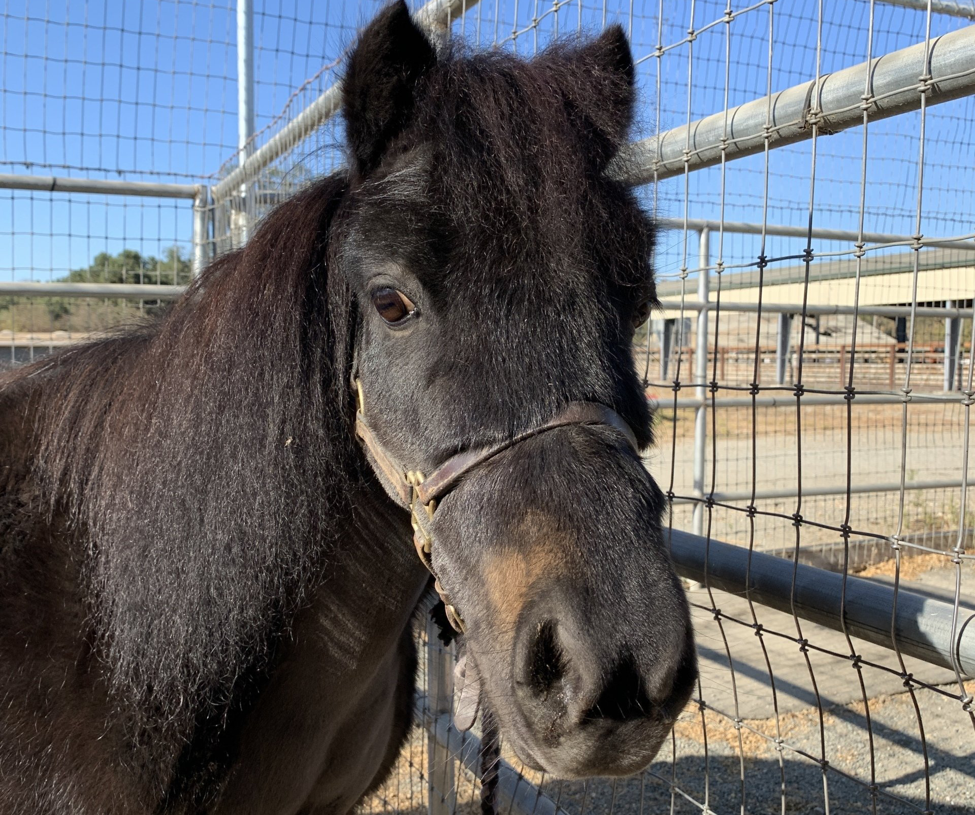 Yaya was part of a herd of miniature horses rescued by the Peninsula Humane Society, and we adopted her in 2009. Since Yaya is a rescue, we don't know her exact birthday, but the veterinarians estimate she was born sometime towards the end of 2008. She was named in honor of a little girl we met during a visit to Ronald McDonald House. Unbeknownst to us, Yaya was in foal when we adopted her, which brought us Henry. Yaya is our resident musician giving "Lady Yaya" performances where she plays an electronic keyboard with her nose.